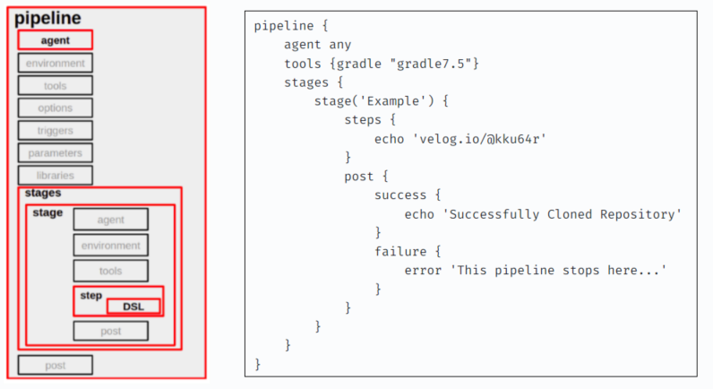 많은 분들이 심플한 Declarative Pipeline을 사용하기도 하고, 저 또한 해당 방법으로 파이프라인을 구성했기 때문에 이번 포스트에서는 해당 문법을 정리하도록 하겠습니다.